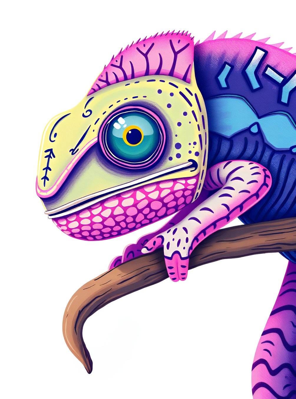 Transform your space with our vibrant digital download of a colorful chameleon perched gracefully on a branch. This stunning wall art captures the essence of nature's beauty, adding a playful yet sophisticated touch to any room.